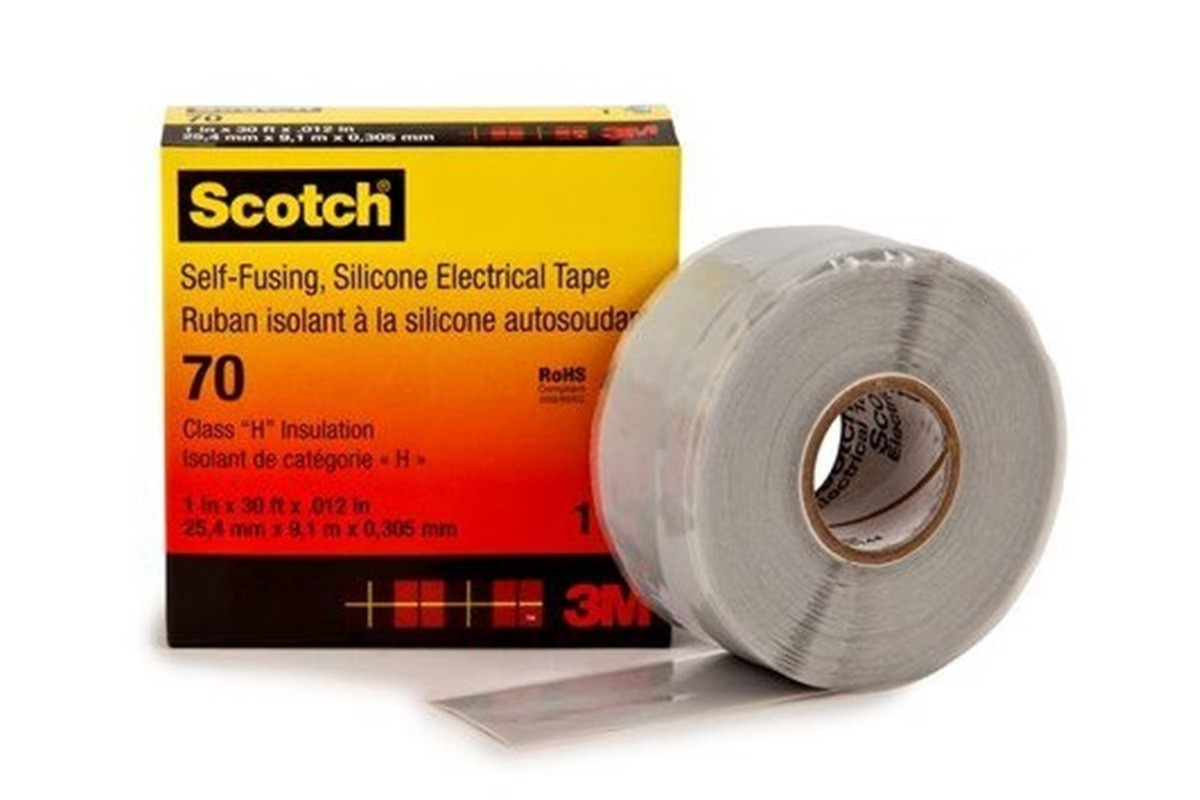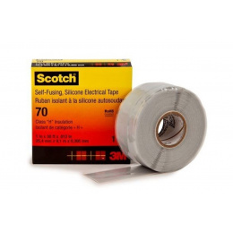 A 3M Scotch 70 világosszürke színű szilikon önhegesztő szalag ellenáll az elektromos ívnek, a kúszóáramoknak, az UV sugárzásnak és más külső környezeti hatásoknak. Kiváló önhegesztő és öntisztító képességekkel rendelkezik, nagyon finom a felületen és jól leválik. Nem tartalmaz halogéneket, és égés közben csak csekély füstöt képez, amely nem agresszív és nem mérgező. Ennek köszönhetően alkalmas szigetelésre és tömítésre az ún. nem éghető kábeleken. Tűri a magas hőmérsékletet, és rendkívül alacsony hőmérsékleten is rugalmas. Ellenáll a kábelolajoknak, gyantáknak és impregnálószereknek. Csak enyhe, állandó húzással tekeredik 10-100% nyúlásnál. Védőfóliával (linerrel) van ellátva, amelyet alkalmazás előtt le kell húzni. Használat: az utolsó külső rétegként kábelvégeknél (a csatlakozások tiszta belépésének biztosítása), szigetelés kültéri vezetékeken, transzformátorokon, nem éghető kábeleken, mint olajgát az átmeneti csatlakozásoknál stb. Technikai paraméterek hordozó: szilikon kaucsuk teljes vastagság: 0,3 mm hőállóság: 180 °C UV-állóság: nagyon jó nedvességállóság: nagyon jó kémiai ellenállás: nagyon jó