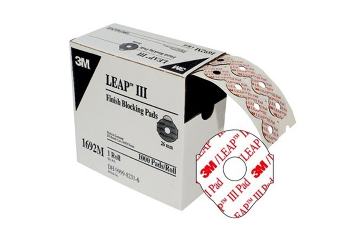 3M Leap III 1692M egy speciális kétoldalas ragasztós habpárna a standard szemüveglencsék csiszolás közbeni rögzítéséhez. A kör alakú alátét átmérője: 26 mm, 1 tekercs = 1000 alátét. Műszaki paraméterek anyag:fekete poliolefin hab, vastagság, 0,56 mm ragasztó:szintetikus kaucsuk hordozó:fehér nyomtatott papír