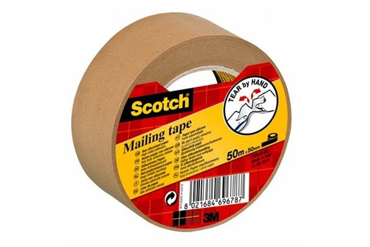 3M Scotch Mailing Tape (P5050) irodai csomagolószalag könnyen letekerhető, kézzel téphető és írható. Nem tartalmaz szilikont. Alkalmas könnyebb csomagok ragasztására. Műszaki paraméterek ragasztó:gumigyanta hordozó:papír teljes vastagság:0,11 mm