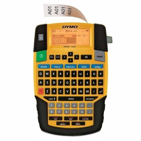 A DYMO Rhino™ 4200 címkéző lehetővé teszi a címkék gyors és az Ön igényei szerinti elkészítését. Könnyű navigációt kínál a jól ismert QWERTY típusú billentyűzettel. A billentyűparancsok segítségével gyorsan létrehozhat és formázhat vezeték/kábel jelöléseket, zászlókat, Code 39 és Code 128 vonalkódokat, fix hosszúságú címkéket, modulcímkéket stb. A címkéző 19 mm szélességben nyomtat címkéket hajlékony nejlonra, állandó poliészterre és tartós vinilre – ÉS TOVÁBBÁ közvetlenül zsugorcsövekre is nyomtat. Az új funkciókkal még több időt takaríthat meg. Például a kedvencek billentyű azonnali hozzáférést biztosít a gyakran használt elemekhez, szimbólumokhoz és kifejezésekhez, míg az egyéni beállítások billentyűje megszünteti az azonos lépések ismétlésének szükségességét az egyéni beállítások mentésének lehetőségével.