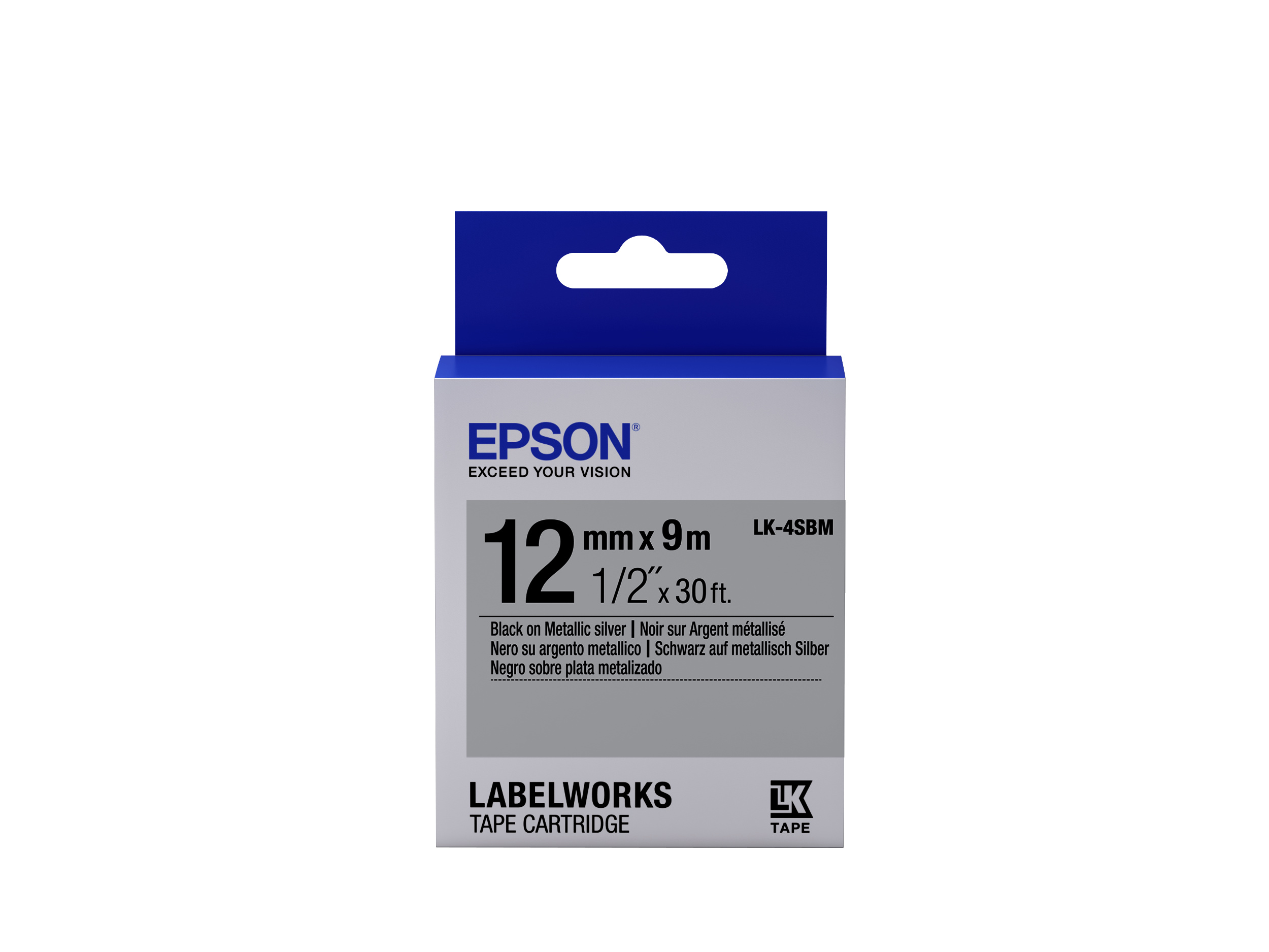 Epson LabelWorks LK-4SBM C53S654019 12mm x 9m, fekete nyomtatás / ezüst alapon, fluoreszkáló, eredeti szalag