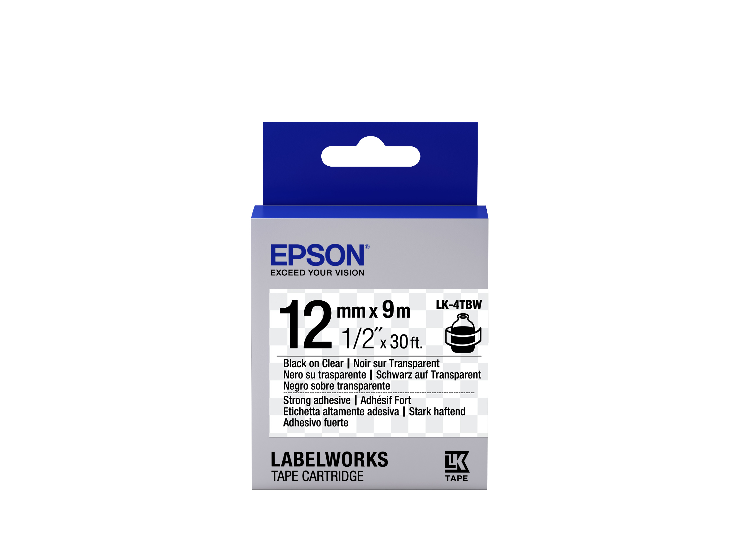 Epson LabelWorks LK-4TBW C53S654015 12mm x 9m, fekete nyomtatás / átlátszó alapon, erős ragasztó, eredeti szalag