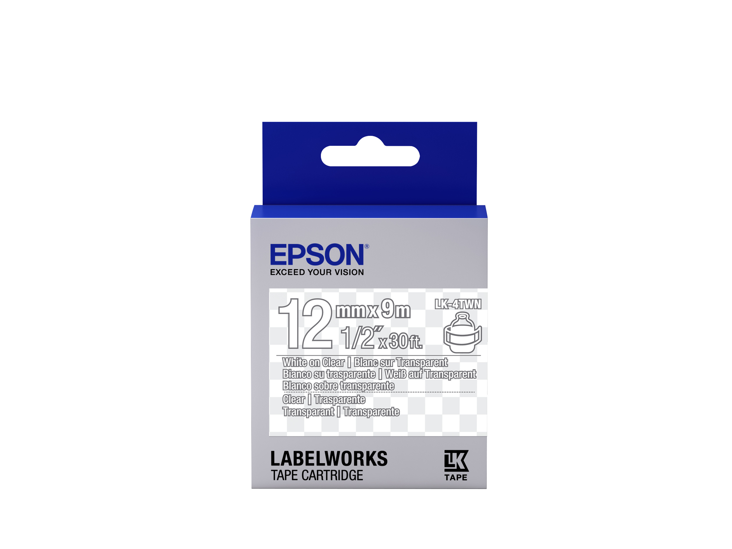 Epson LabelWorks LK-4TWN C53S654013 12mm x 9m, fehér nyomtatás / átlátszó alapon, eredeti szalag