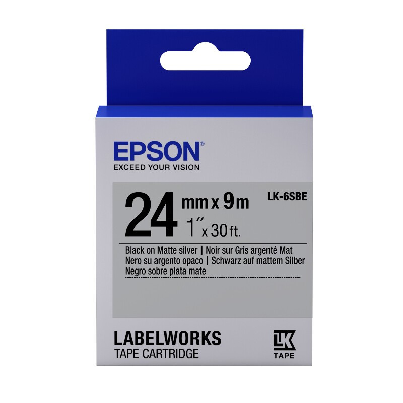 Epson LabelWorks LK-6SBE C53S656009 24mm x 9m, fekete nyomtatás / matt ezüst alapon, matt, eredeti szalag használható ezekben a nyomtatókban