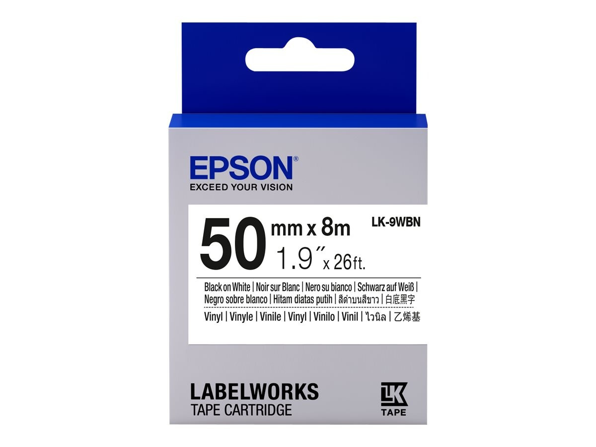 Epson LabelWorks LK-9WBN C53S659001 50mm x 8m, fekete nyomtatás / fehér alapon, eredeti szalag használható ezekben a nyomtatókban