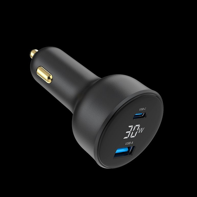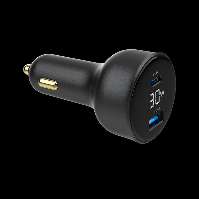 TISZTA TELJESÍTMÉNY 30 W teljesítmény az okostelefonod vagy iPhone-od számára Type-C csatlakozóval* Gyorsabb töltés: ideális rövid utakra és ingázásra Segít a telefon akkumulátorát feltöltve tartani zene vagy nagy energiafogyasztású navigációs alkalmazások használata közben Praktikus LCD kijelző töltésjelzővel Tulajdonságok 2 portos autós gyorstöltő PowerDelivery (PD) USB Type-C-vel és 30 W teljesítménnyel A Type-C port támogatja a 30 W PD-t, a Type-A port támogatja a 30 W QC 3-at.0 Praktikus LCD kijelző mutatja a töltési állapotot Intelligens védelem a túláram, túlfeszültség és rövidzárlat ellen Specifikációk Bemeneti feszültség: 12 - 24 V?, max. 3,0 A Kimenet USB-A: 5,0 V? 3,0 A, 9,0 V? 3,0 A, 12,0 V? 2,5 A (max. 30 W) USB-C kimenet: 5,0 V? 3,0 A, 9,0 V? 3,0 A, 12,0 V – 2,5 A (max. 30 W) Kimenet USB-A+USB-C: 5,0 V – 3,6 A (max. 18 W)