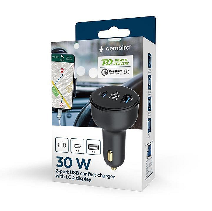 vissza a listáhozNabíječka do auta, 2-port USB car fast charger, Type-C PD, 30 W