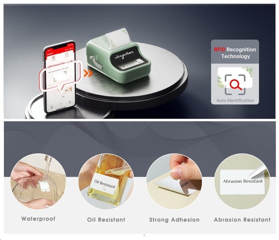 A kiváló minőségű japán nyomtatófej garantálja a nyomtatás magas ellenállóságát, pontosságát és tartósságát. A Niimbot címkék lamináltak, víz-, olaj-, UV-sugárzás- és fagyállóak, így még nehéz körülmények között is olvashatóak és szorosan tapadnak.Közvetlen hőnyomtatási technológia - nincs szükség tinta és toner használatára