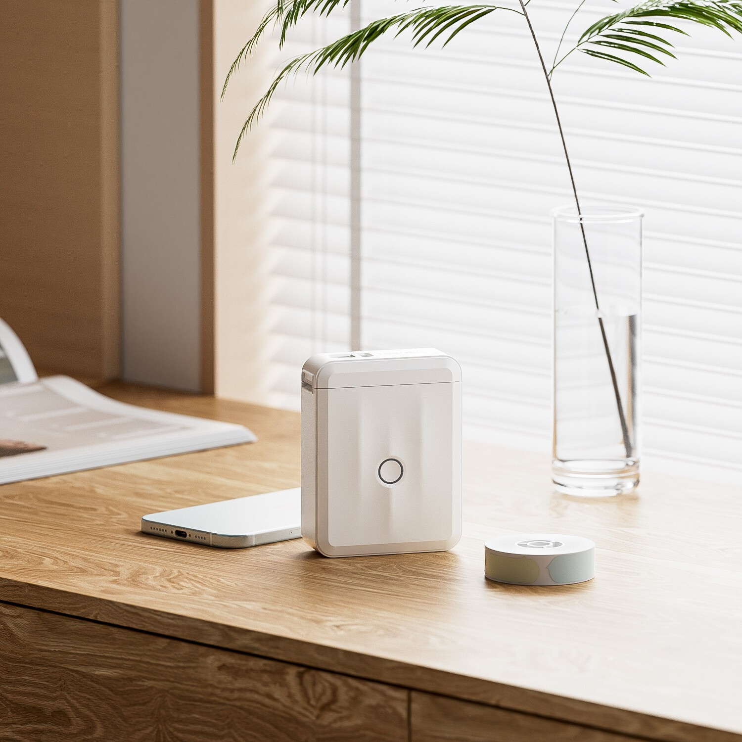 Niimbot D110-M Smart 1AA56011604 címkéző, csuklópánt, USB-C töltőkábel, fehér öntapadós címkék készlete 15 x 30 mm (210 db)