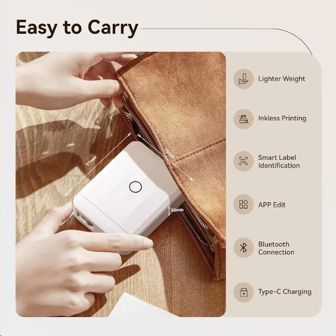 Kínál 203 dpi felbontást, nyomtatási szélességet akár 12 mm-ig, és támogatja a 12–15 mm szalagokat, így képes pontos, tiszta és professzionális címkék készítésére.A Niimbot App alkalmazásnak köszönhetően, amely elérhető Androidra és iOS-re, egyszerűen tervezhet címkéket, módosíthat betűtípusokat, adhat hozzá ikonokat, vonalkódokat és QR-kódokat vagy kereteket. A címkéző automatikusan alkalmazkodik a behelyezett szalaghoz, és biztosítja a tökéletes nyomtatási formátumot.