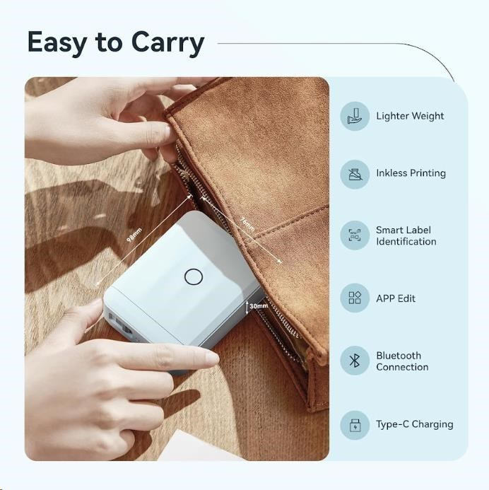 A Niimbot D110-M Smart 1AA56301619 modell a könnyű súlyával és minimalista dizájnjával is lenyűgöz, amely könnyen elfér a tenyérben vagy a zsebben.A Niimbot laminált címkék ellenállnak a víznek, fagynak, olajnak és UV sugárzásnak – ideálisak hosszú távú jelölésre.