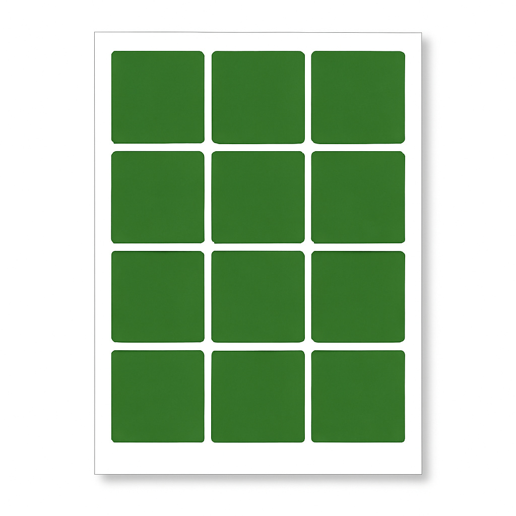 Professzionális megjelenés – tiszta vágások és precíz címkeelrendezés az íven.