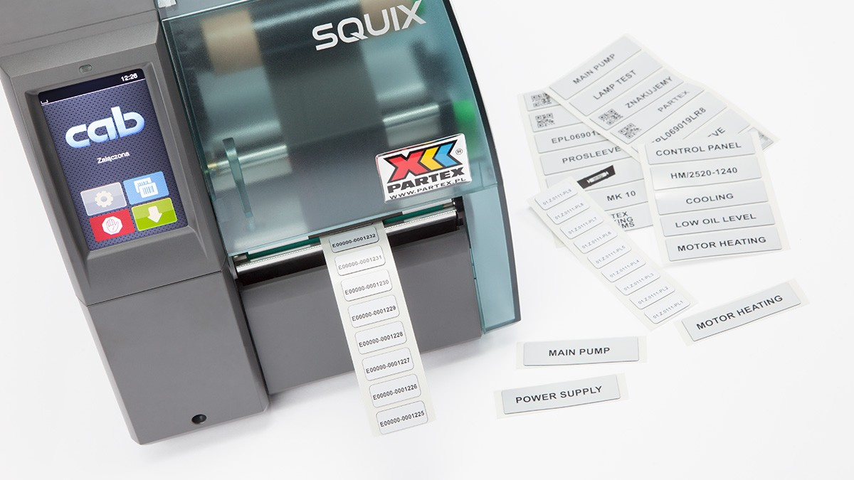 A Partex MK10-SQUIX címkenyomtató egy modern, nagy teljesítményű termotranszfer nyomtató, amely akár 300 mm/s sebességgel képes nyomtatni a Partex hüvelyekre. A nyomtató csatlakoztatható a számítógéphez USB porton vagy Wi-Fi modulon keresztül. Különleges szoftverrel, a Promark Creator-ral irányíthatjuk. A profilokat kívülről vezetik be a nyomtatóba, vagy a készülék belsejében elhelyezett tekercsekből és hengerekből tekerik le, majd a nyomtatás és esetleg a felhasználó által választott hosszúságú perforálás következik. Számos funkció, érintőképernyő és 102 mm széles nyomtatófej 300 dpi felbontással teszi tökéletes eszközzé igényes ipari alkalmazásokhoz.