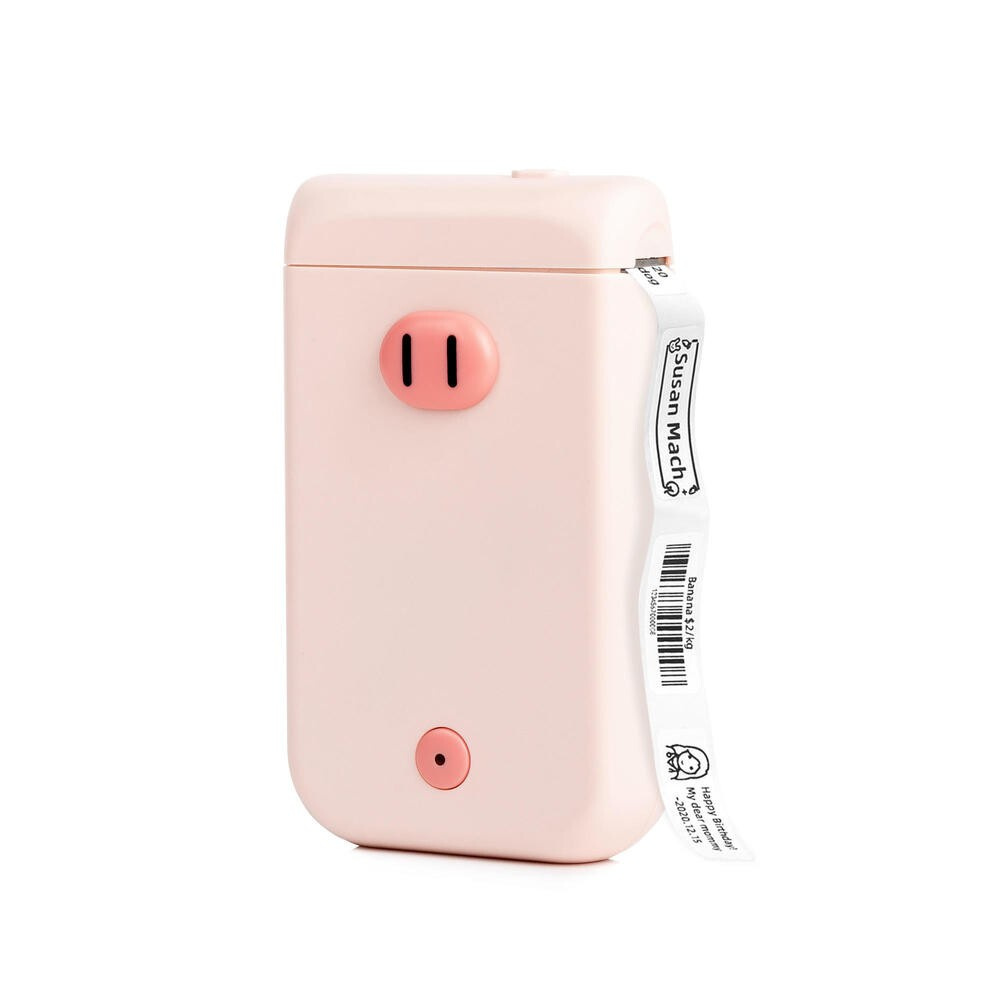 PONY D30S címkéző Mini Pink Pig egy zsebméretű hőnyomtató. Nyomtasson könnyen és gyorsan a mobiljáról vagy táblagépéről vezeték nélküli Bluetooth kapcsolaton keresztül, vagy a Print Master alkalmazással Androidra vagy iOS-re. A PONY D30S címkenyomtató képes ökológiai anyagokból készült öntapadós címkékre vonalkódokat, szöveget, képeket és ikonokat nyomtatni. Ezzel a aranyos és színes címkézővel, amely malac motívummal rendelkezik, és hasznos segítője lesz az ön otthonának, megjelölheti a konyhai fűszertartókat, a kozmetikai vagy ékszer szervezőket, iskolai füzeteket, kábeleket stb. Alkalmas a kézműves termékeid árcéduláinak vagy a díszes ajándékcímkék készítésére is. Nálunk különböző színű, gyönyörű és díszes mintákkal ellátott öntapadós címkéket is talál.
