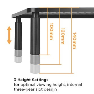 Powerton ERGO BUCO emelvény három szinten 10 / 12 / 14 cm magasságállítást kínál, hogy minden felhasználó igényeinek megfeleljen. Ne terhelje túl a nyaki gerincét és a nyakizmokat, emelje meg a monitorát a megfelelő magasságba.