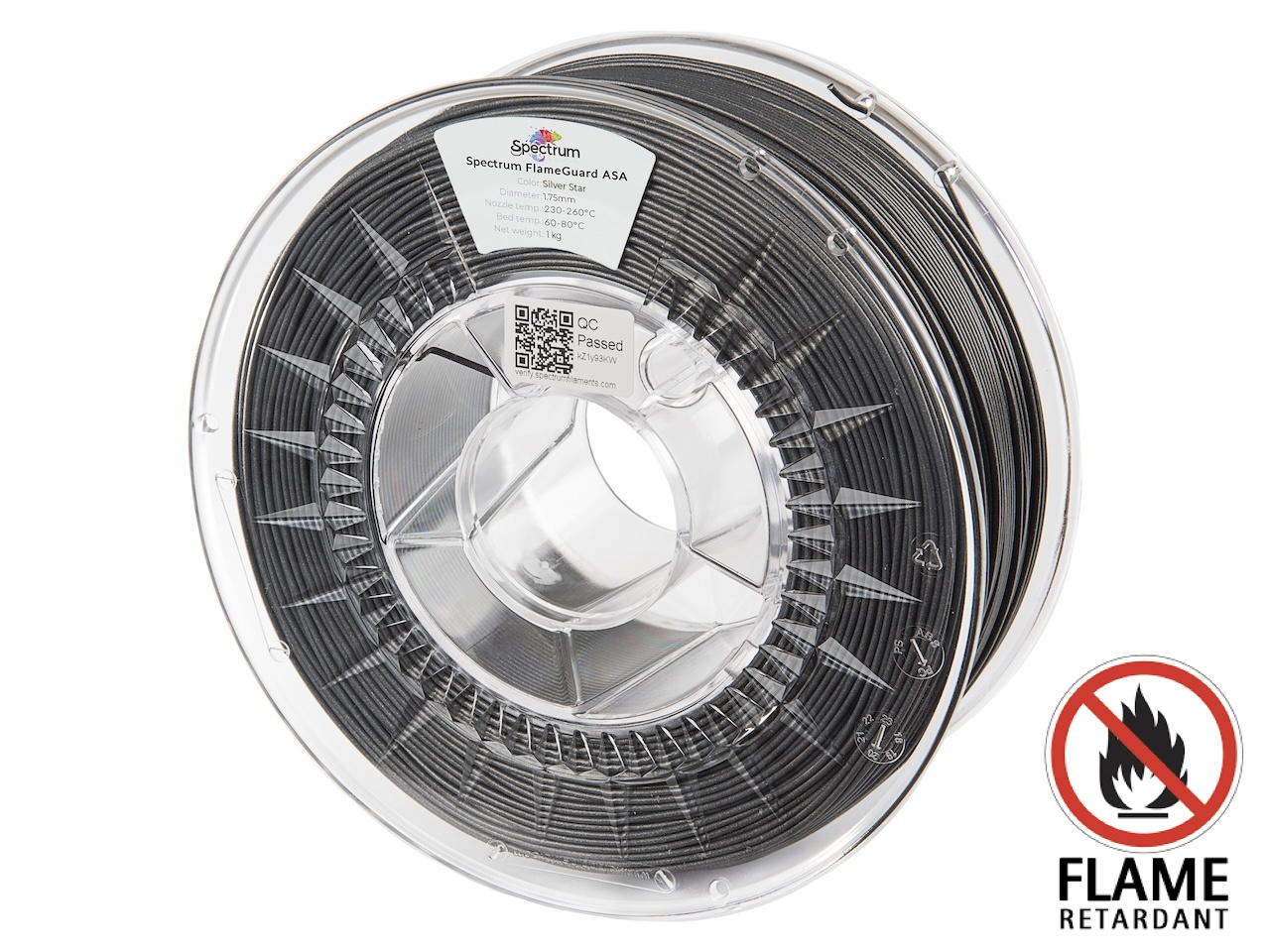 A Filament Spectrum FlameGuard ASA 275 egy fejlett anyag, amelyet asztali 3D nyomtatókhoz terveztek. A FlameGuard verzió a bevált ASA 275 összetételen alapul, és kifejezetten úgy lett tervezve, hogy megfeleljen a szigorú tűzállósági követelményeknek az UL94 V0 besorolás szerint. Ez azt jelenti, hogy a szál vagy az abból nyomtatott alkatrészek, ha függőleges helyzetben égési tesztnek vetik alá, 10 másodpercen belül maguktól elalszanak, anélkül, hogy a tűz továbbterjedne.