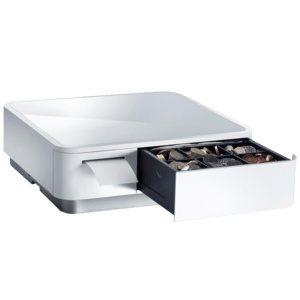 Cash drawer-receipt printer combination, front opening, dimensions (WxHxD): 308x100x300mm, insert: 4 bill, 6/8 coin, 1 check, printer: direct thermal, media width (max): 58mm, roll diameter (max): 50mm, printing speed (max): 100mm/sec, interfaces: 3x USB-A, 1x USB-C (for iOS), 1x USB-B, Bluetooth (5.0), includes: Power cable (EU, UK), USB cable (USB-A/USB-B, white), tablet holder (double-sided), receipt roll, color: whiteLetöltési linkek