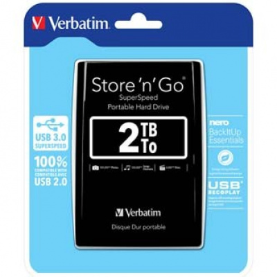 Verbatim 53177 Store N Go, Külső merevlemez, 2.5", USB 3.0 (3.2 Gen 1), 2TB, fekete
