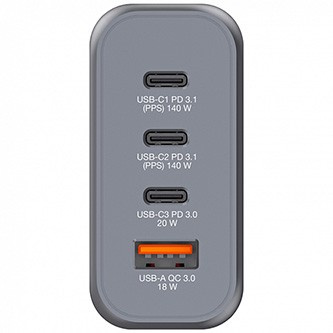 Akár három eszköz egyidejű töltését támogatja, legfeljebb 140 W maximális összteljesítménnyel.